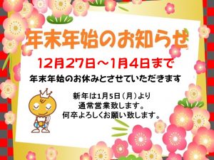 ⛄年末年始のお知らせ🎍